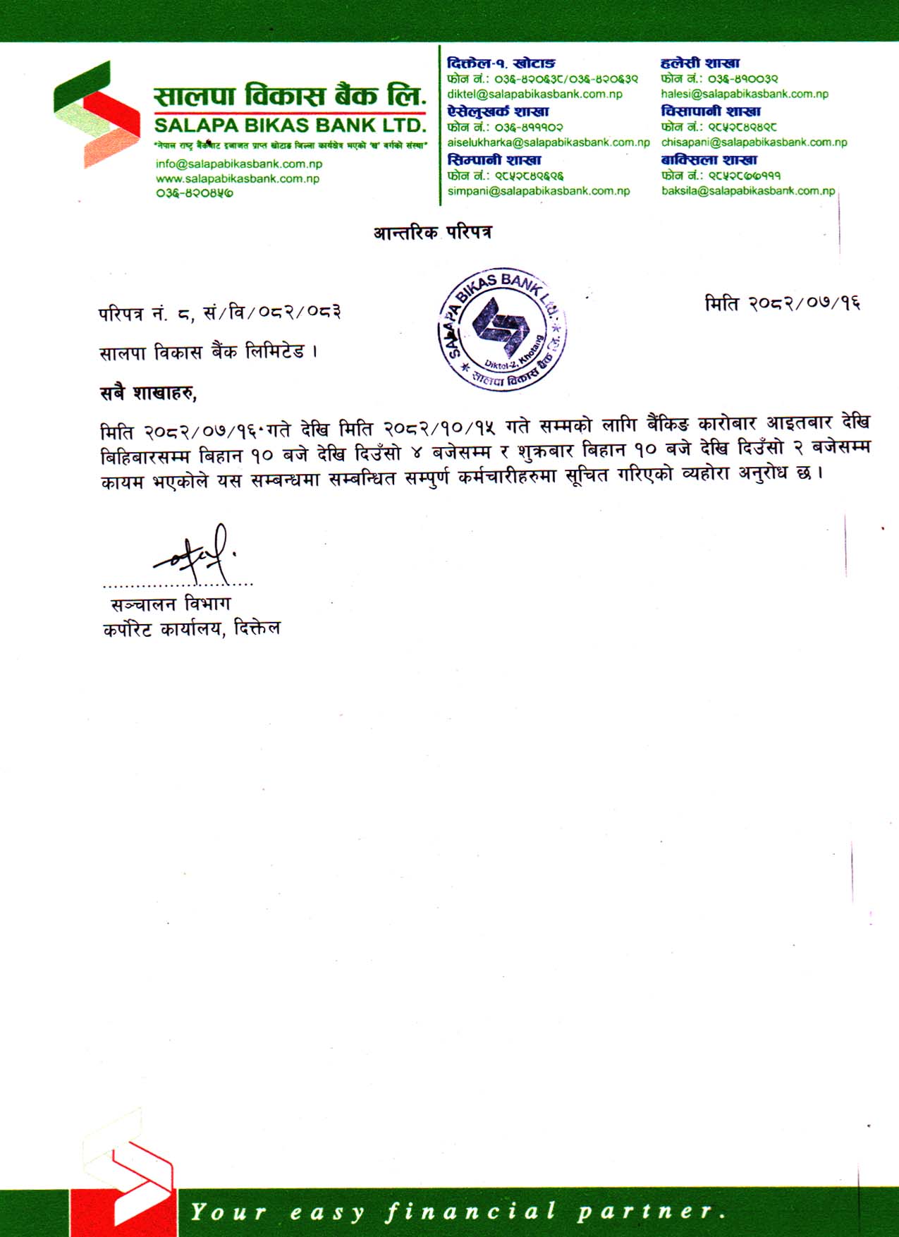 Main Branch, Diktel 036420638/036420639 diktel@salapabikasbank.com.np Dipkar Rai